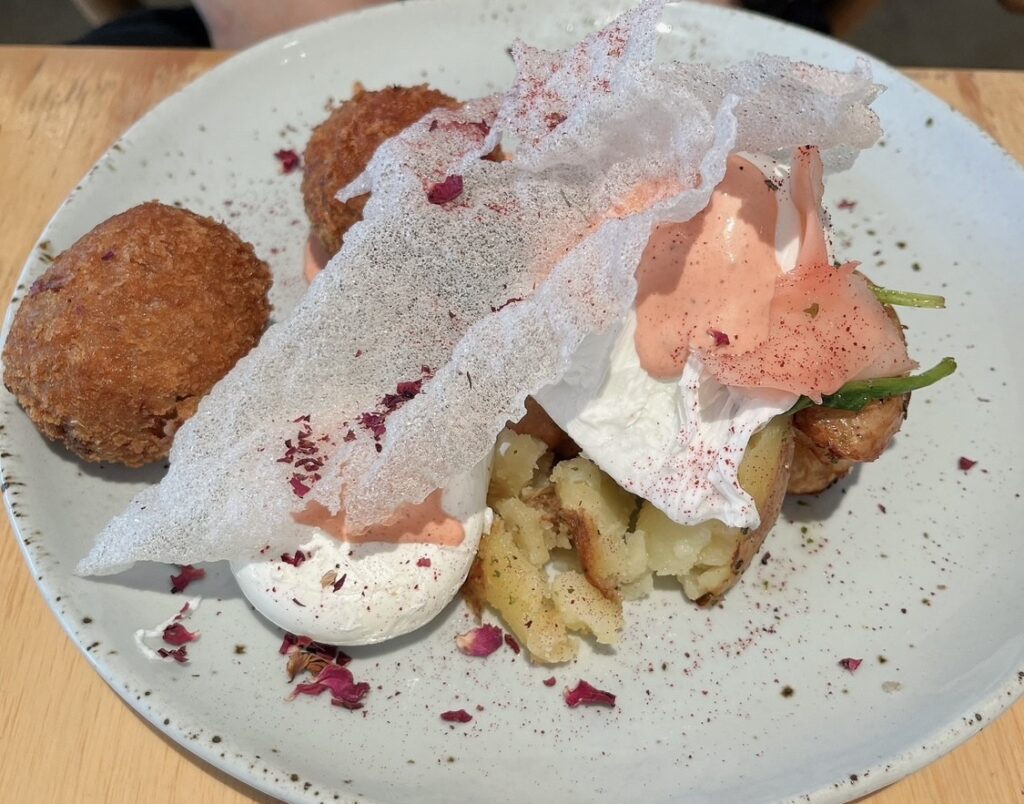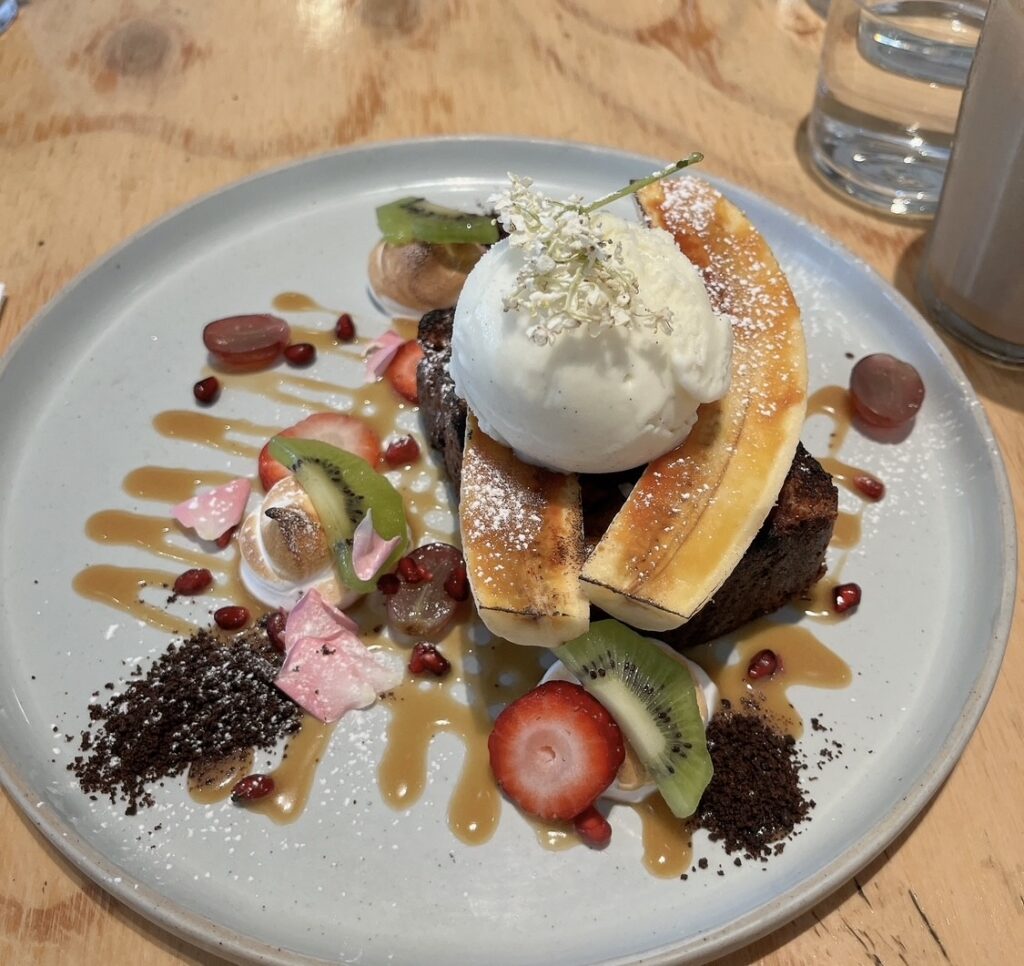 甘いものが食べたかったので私はフレンチトーストにしました。フライト後の疲れた身体にちょうど良かったです。夫はご飯系のプレートを注文していましたが、そちらも美味しそうでした😆